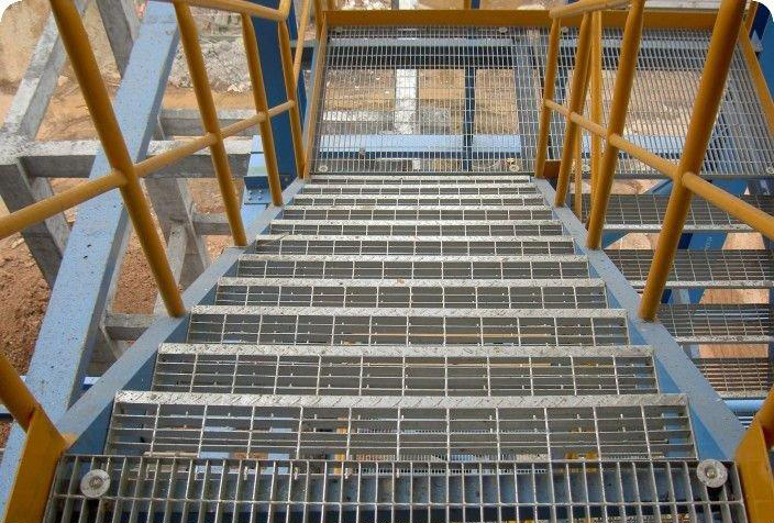 (3)T3踏步:由承載扁鋼和橫桿按照特定的比例焊接而成的,帶有前防護板,防止滑倒。